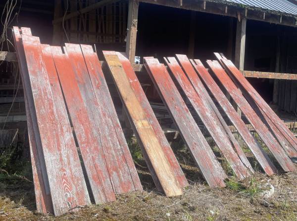 Weathered red barn boards from early 1900's dairy barn. Several hundreds of linear feet with varying lengths from 2ft-8ft long. And a very few longer boards up to 12ft long.