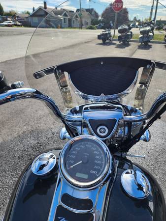 Bluetooth sound system, detachable windshield, Screamin' Eagle Air cleaner, Vance & Hines mufflers, chrome bumper, luggage rack, heated grips, quick detachable passenger backrest with arm rests, new tires all around, fresh brake flush........... one owner bike!