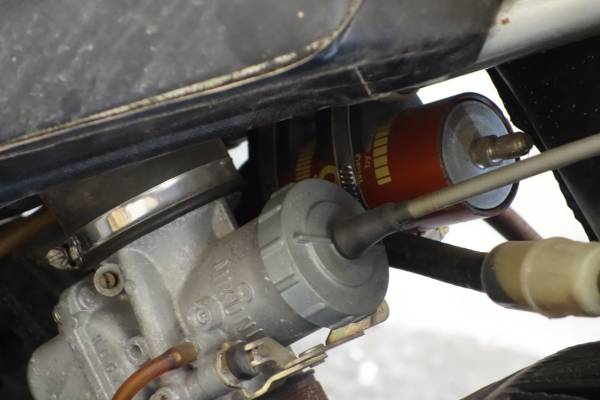The bike was put away running about 5 years ago so the fuel was drained from tank and Mikuni carburetor. Ohlins rear shocks, factory.