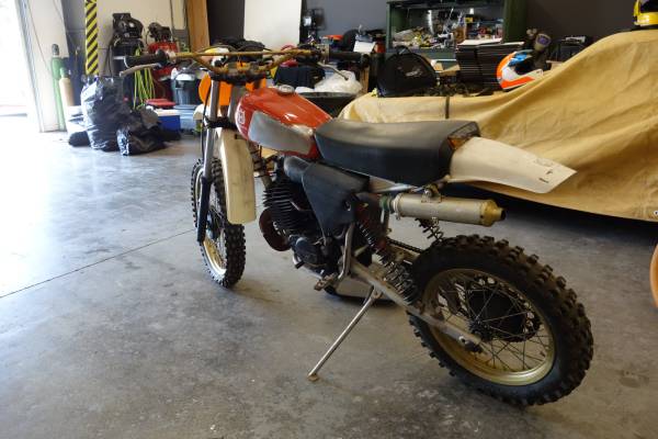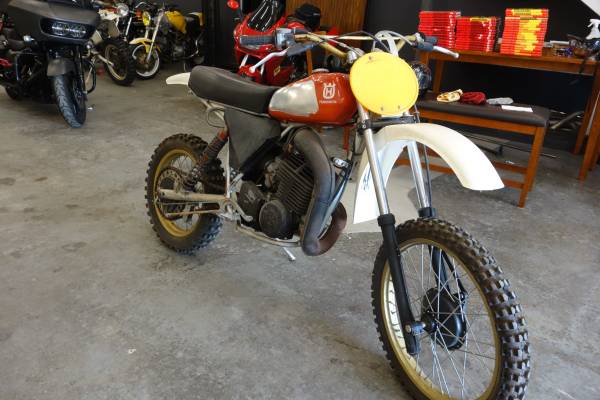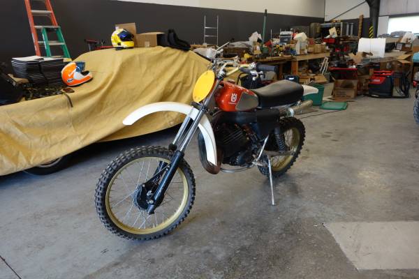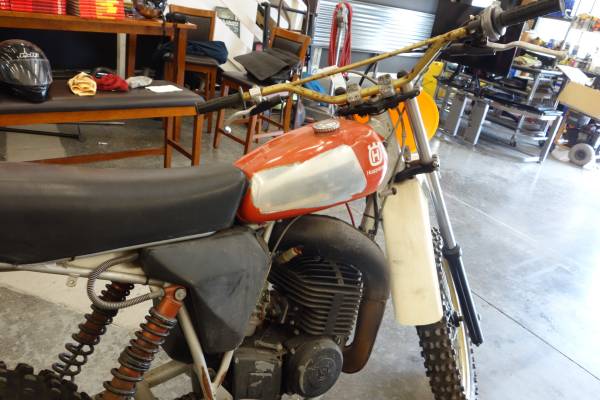 This bike was purchased new at Totem Lake Husqvarna and been in the family since being handed down to the kids along the way. The bike is in original condition. I have had aspirations to ride it again and started collecting spares. I have removed the Preston Petty Tank that was on the bike for desert racing in Mattawa.