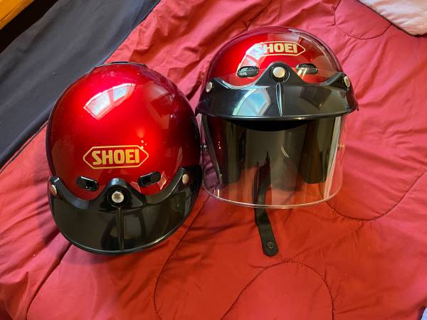 Motorcycle HELMETS - SHOEI MOTORCYCLE HELMETS — Shoei Open Face RJ Air Maroon Red with Visors. One Small, One Medium. Excellent Condition. $50.00 each
