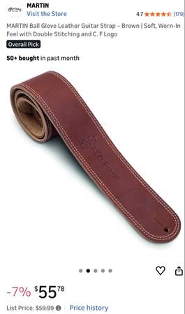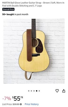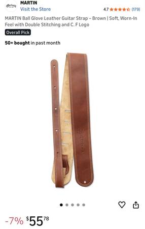 New with tag Martin adjustable leather guitar strap. Very soft, high quality and comfortable. Bought an extra one I don’t need. Would make a great stocking stuffer for the guitar lover.