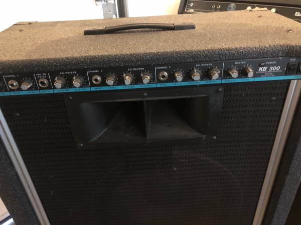 Here we have the famous KB300 by Peavy. A great universal amp for just about everything. Originally designed asa keyboard amp, but works great for a mobile PA as well. Three EQ-able channels plus reverb. 15" Black Window speaker. Hate to get rid of it but health issues dictate otherwise......