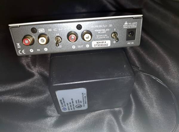 Schiit magni headphone amp good for 32 - 600 ohm headphones rca in / thru with 1/4 phones output got this for high impedance phones but never much used it. hoping maybe someone else can take...