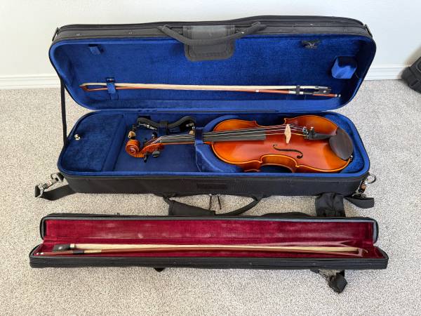 Played for about 2 years. Good condition. It has lived in its case for a long time unplayed and I’d like it to go to someone who would actually play it. Great starter violin.