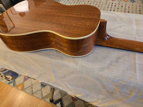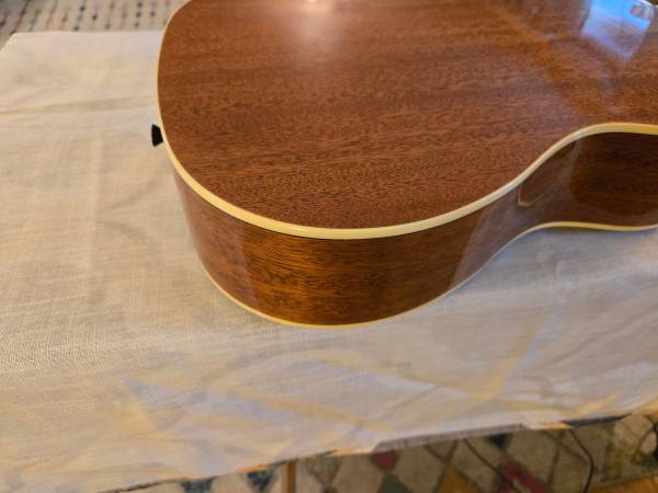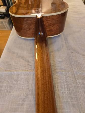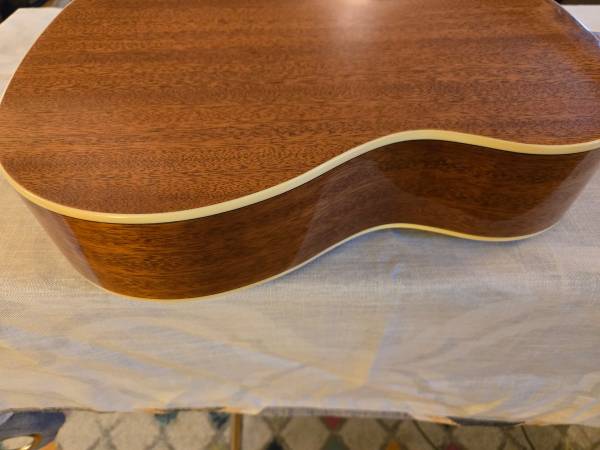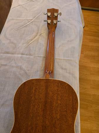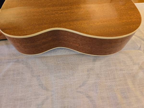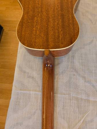 Beautiful, simple and stabil red mohogany with excellent trim & durable gloss finish. Chrome tuning pegs. Contact me and I'll play you a tune.