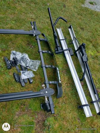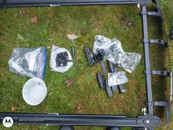 Keys, parts, screws , got em all . Two bike roof rack and a wind deflector .