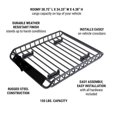 A Cargo Basket on your roof rack allows you to put a multitude of items on the roof of your car. Very handy for long trips. Strap down gas cans, water containers, duffle bags, muddy bicycle tires, muddy clothes and gear, dirty outdoor equipment, and many other items, all in the safety of the cargo basket, while keeping the interior of your car clean, uncluttered, and odor free.
