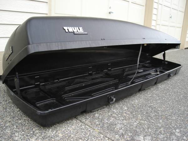 * Yakima XL Rooftop Cargo Box, like new. 18cuft. Fits ALL bar types. The absolute best, waterproof , dust proof way to hold skis, snowboards, dufflebags, backpacks, suitcases, etc. 595 .