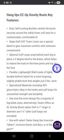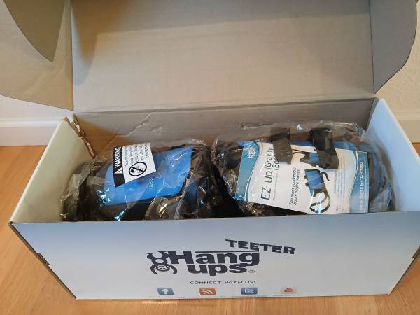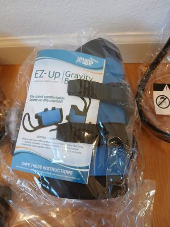 Teeter Hang Ups EZ-Up Gravity Boots. New in box. Box includes a pair of EZ-Up Gravity Boots, calf loops for added comfort, and a conversion bar for use with Teeter Hang Ups Inversion table.