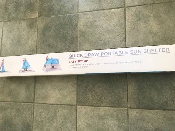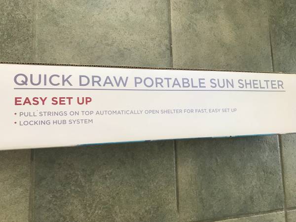 Here's a brand new never out of the box Quest Quick Draw Sun/Wind Shelter. We bought this at Dick's to bring to our kids sports games but never actually used it. Thanks for looking.
