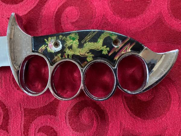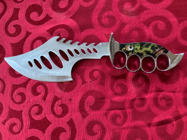 Both knives for $10 1. "Brass Knuckle Knife" with stainless Sawback and dragon design, includes sheath - Total length is 13.2", blade is sharp, but overall quality is just OK 2. Ozark Trail - blade...