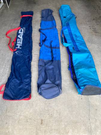 Ski Bag - 3 to choose from My skis are 177 cm in length and easily fit in each of these bags with 5-8 inches left over 1. Rocky Mountain ski bag - $25 - Color: agua marine - Bag is padded, outer...