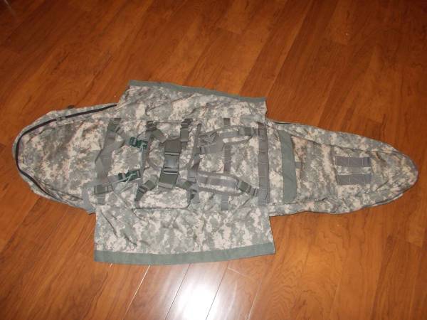 Camo drag bag fits long rifle measures 57x19 closed,opens to 35 wide, made in U.S. by Bully Dog, Fits Barrett like new. 250.00 phone calls only 4 2 5 3 5 0 5 3 8 9, no text or email will get reply