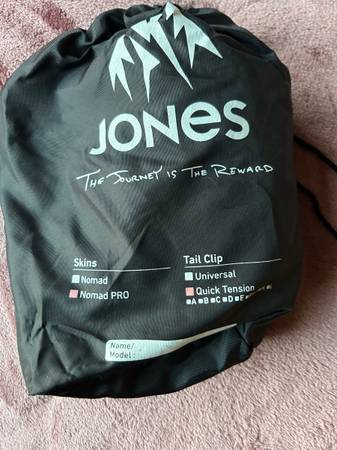 Jones Nomad Pro Quick Tension Skins- skins are made by jones specifically for this board size and shape. Have about 10 tours on them and they are in near perfect shape. Lots of life and use left.