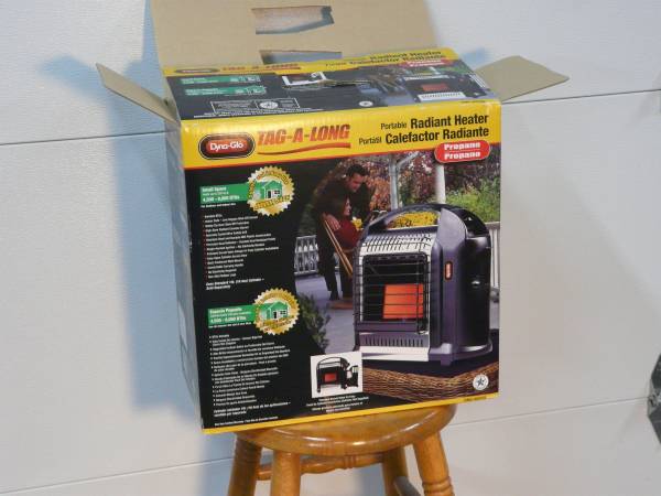 I have a LIKE NEW Dyna-Glo "Tag-a-Long" 8,000 BTU propane portable heater. We used it one time during a power outage, and it worked fine. My wife loved it !! Come get it at this give-away price !!...