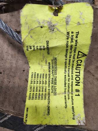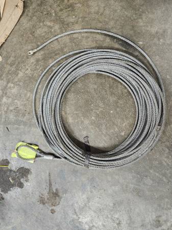 5/16" 7x19 strand galvanized aircraft cable. 9800lb. Breaking strength. About 110ft. Long, Stored inside and never used. Would make good winch line or extension cable. $30 or best offer.