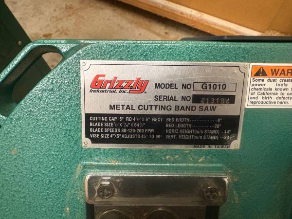 Grizzly Metal Bandsaw - tools - by owner - sale - craigslist