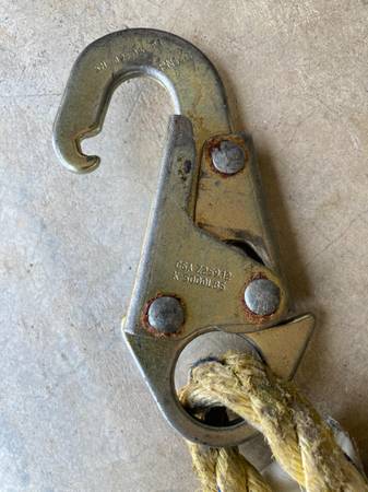 1. 30+' rope with snap hook (snap hook sticks so needs to be opened and closed manually) - $10