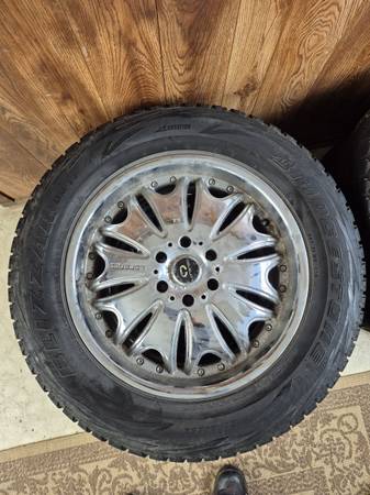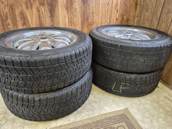 Low mileage Bridgestone Blizzak studless winter tires approximately 7000 mi. Tread still in great shape. Includes rims. Buyer must pick up. $050 OBO