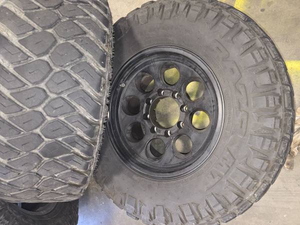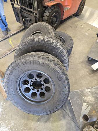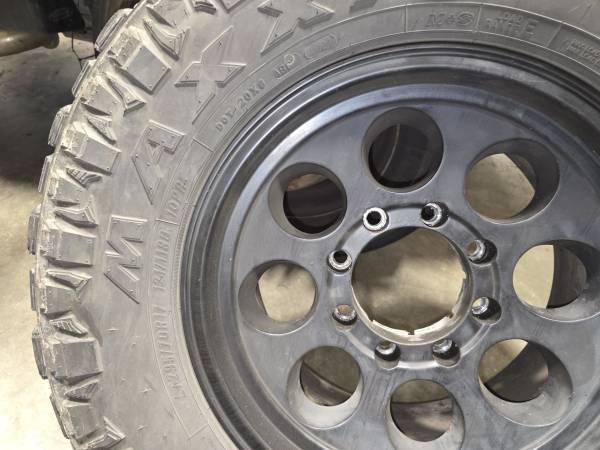 8x6.5 black 17in wheels with Maxxis razr Mt