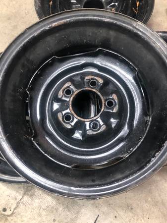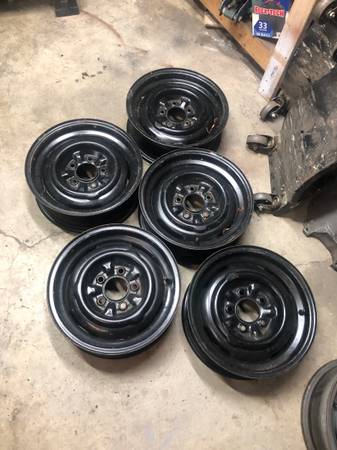 For Sale: 5 good condition original 1955 or early 1956 Chevrolet 15” X 5” riveted steel wheels. 4 hubcap nub. (5 on 4 3/4 bolt pattern).