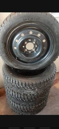 Four 185/60/14 studded snow tires steel wheels,4/100 Honda and 4/4.5 mm bolt pattern, Don't ley the snow surprise you,preparé you self with tires for you car,very good condition.