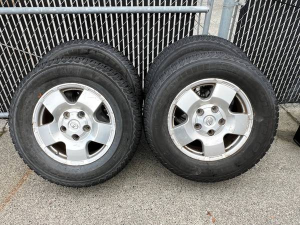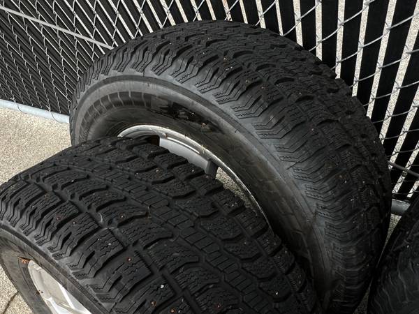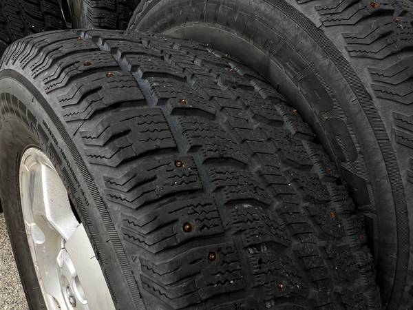 275/65 R 18 Wintercat Studded snow/ice winter tires mounted on 18" Toyota Tunda / Sequoia 5x150mm factory alloy wheels. These were incredible on our Sequoia in snow and icy conditions! Tires are in good condition, wheels are in cosmetically fair condition and perfectly functional.